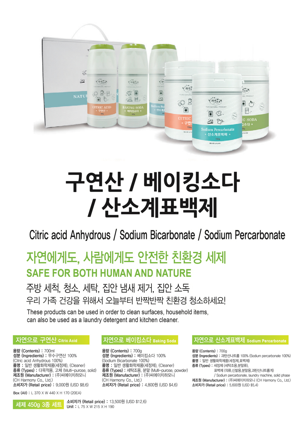 Citric acid Anhydrous/Sodium Bicarbonate/Sodium Percarbonate
